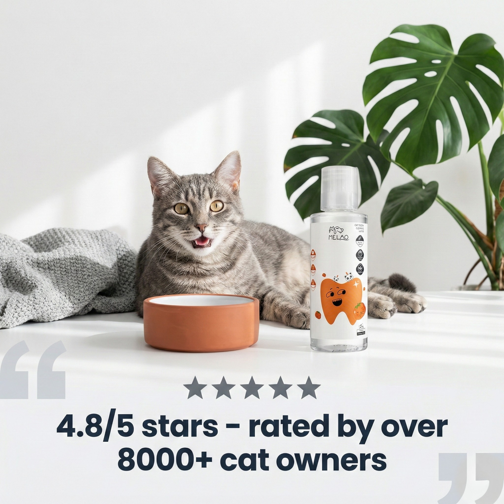 Melao Pet works at the source. This gentle, cat-specific formula helps break down bacterial buildup before it hardens, supports healthier gums, and keeps your cat’s mouth naturally cleaner — all without brushing, stress, or strong flavors.